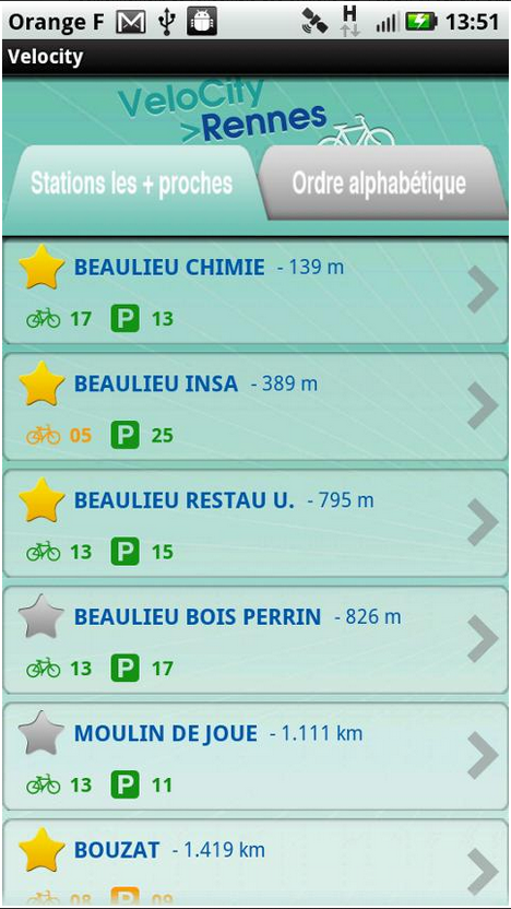 - Gestion des stations LE vélo STAR favorites.