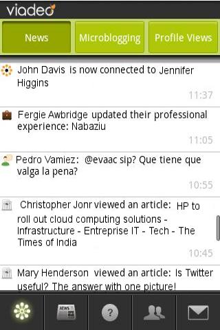 - la page d’Accueil vous informe sur les news de vos contacts, les microbloggings et les visites de votre profil