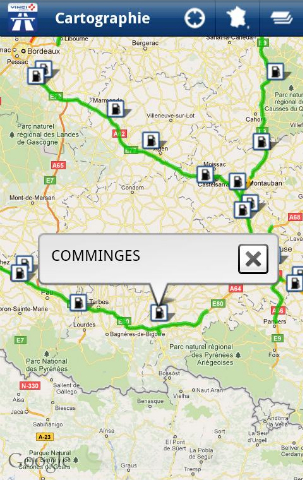 - Cartographie : visualisation de l’ensemble du réseau VINCI Autoroutes, des conditions de circulation et des évènements en cours