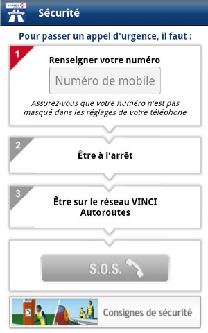 - Sécurité : possibilité de passer un appel d’urgence et présentation des consignes de sécurité