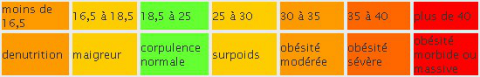 Dans notre exemple, IMC se situe dans la colonne 18,5 à 25 donc de corpulence normale.