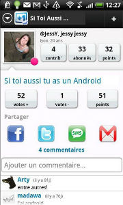 Arrivé sur le Market en décembre 2011, Waluu est un nouveau réseau social en français. Outre le caractère Tchat de l’application, celle-ci regroupe l’ensemble des services et des applications du développeur. Une application qui séduit puisque déjà notée avec une moyenne de 4,4 sur 5 pour 1708 votants. Voila de quoi laisser entrevoir de très beaux jours à Waluu.