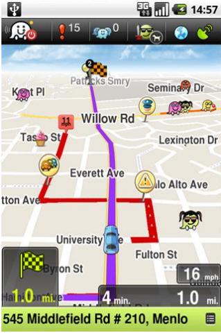 Waze est une application sociale de trafic et de navigation qui utilise des données de trafic fournies en temps réel par les automobilistes situés dans les alentours pour gagner du temps et pour améliorer vos trajets quotidiens. Bien plus que d’autres applications gratuites de navigation, Waze se distingue par sa couche sociale qui permet aux conducteurs de travailler ensemble pour rapporter et recevoir les informations routières les plus pertinentes et les itinéraires les plus efficaces, à tout moment. De plus, Waze rend les trajets beaucoup plus amusants!