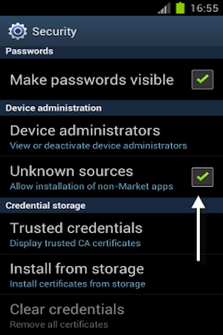 - Assurez-vous que vous avez activé l’option « The Unknown Sources » (ou sources inconnues) dans les Paramètres