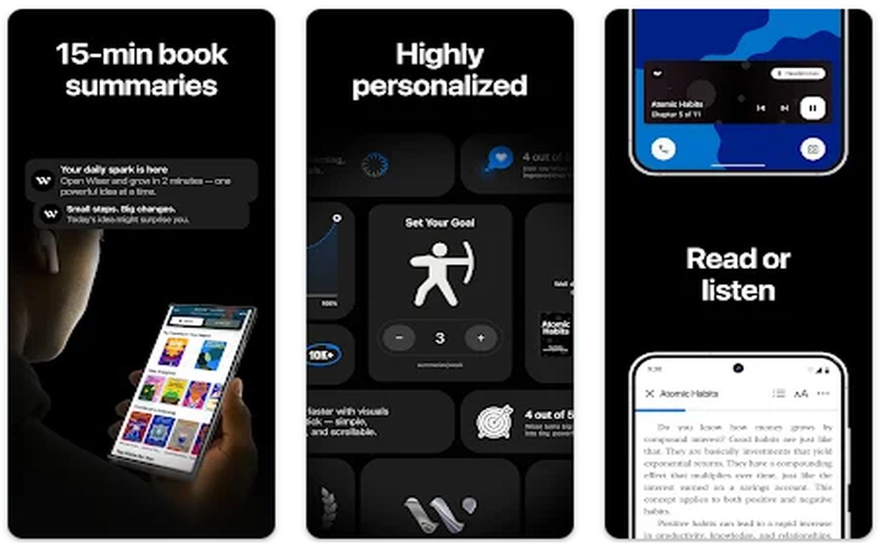 L’interface de Wiser est minimaliste, agréable, et le système d’écoute permet de marquer des passages, de revenir en arrière ou d’accélérer la lecture selon son rythme. Cette flexibilité la rend adaptée aux débutants comme aux auditeurs réguliers. Le format court incite à consommer régulièrement, presque comme une routine quotidienne. Toutefois, la brièveté des extraits peut frustrer ceux qui cherchent une compréhension approfondie d’un sujet, et l’accent mis sur le résumé implique nécessairement des sélections subjectives de contenu : certains détails ou nuances d’un livre complet risquent d’être perdus.